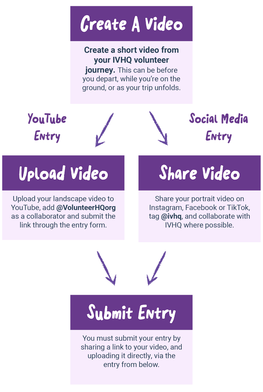 Create a short video about your IVHQ volunteer journey, share it on YouTube or social media, then submit the video link via the official entry form on the IVHQ website.