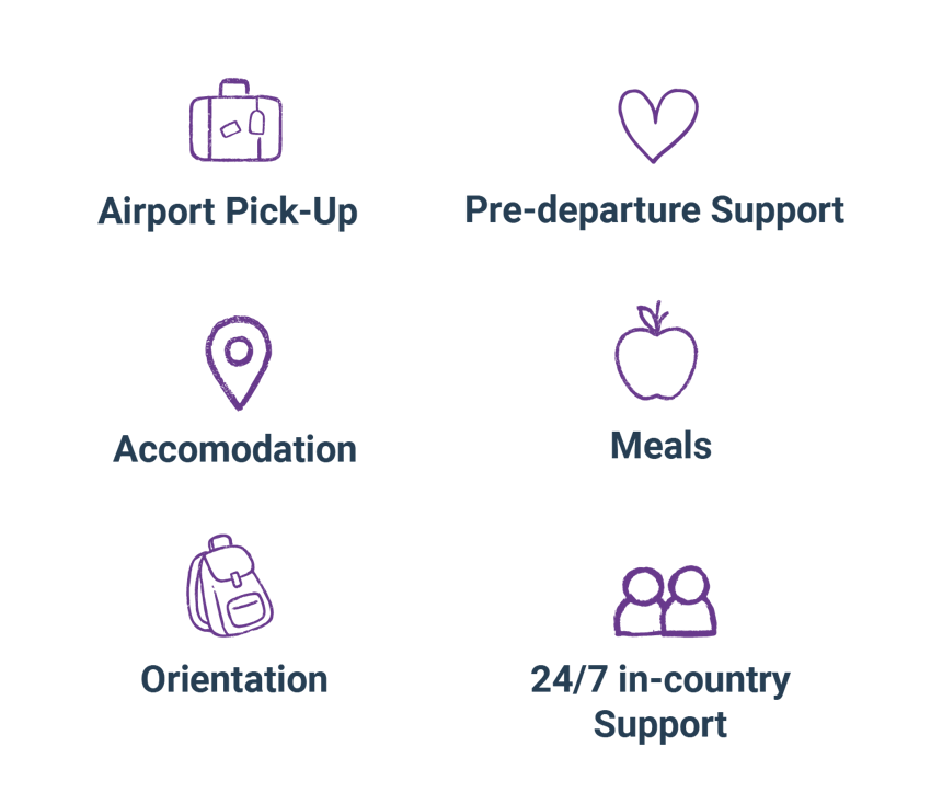 Your IVHQ credit can be applied towards key inclusions such as pre-departure support, airport pick-up, accommodation, meals, orientation, and 24/7 in-country support.